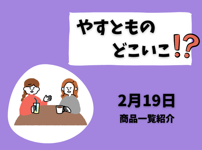 2月19日放送のやすとものどこいこ!?は、藤崎マーケット・トキさん(ともこ姉の代役)&ビスケットブラザーズと一緒にお買い物!(見逃した方はTVerで)